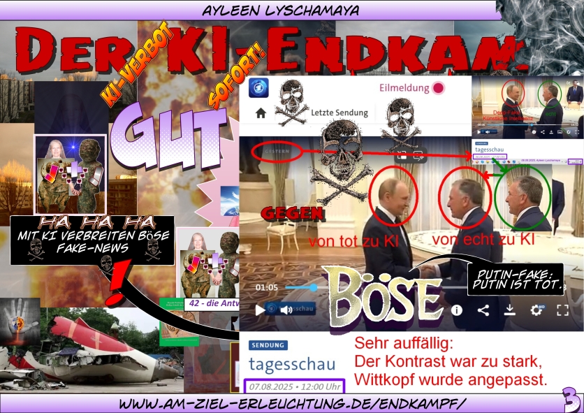 Aktueller Stand: 1) Auseinandersetzungen mit den Bösen, erledigt. 2) Kurze Klärung / Übertragung, worum es geht: Mit den Bodenständigen wird sich nicht wie mit dem männlichen Holm auseinandergesetzt, sondern es wird erreicht, inhaltlich rudimentär geklärt und mehr hat es nicht zu sagen. Es wird sich automatisch danach richten, wie das neue Weltbild ist, erledigt. Und das neue Weltbild ist der dritte Schritt: 3) Das Endgericht für die Schülers als die Normalbevölkerung. Wird die Menschheit den Paradigmenwechsel mitmachen oder ausgelöscht?