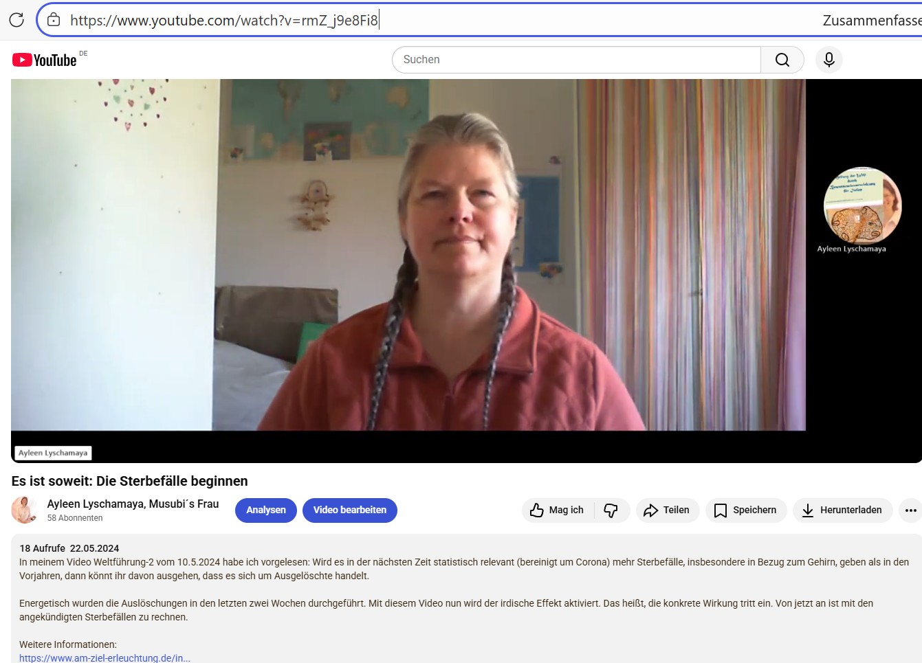 Im Video vom 10.05.2024 hat Musubi statistisch relevante Übersterblichkeit durch unsere Auslöschungen mit Todesfällen angekündigt.